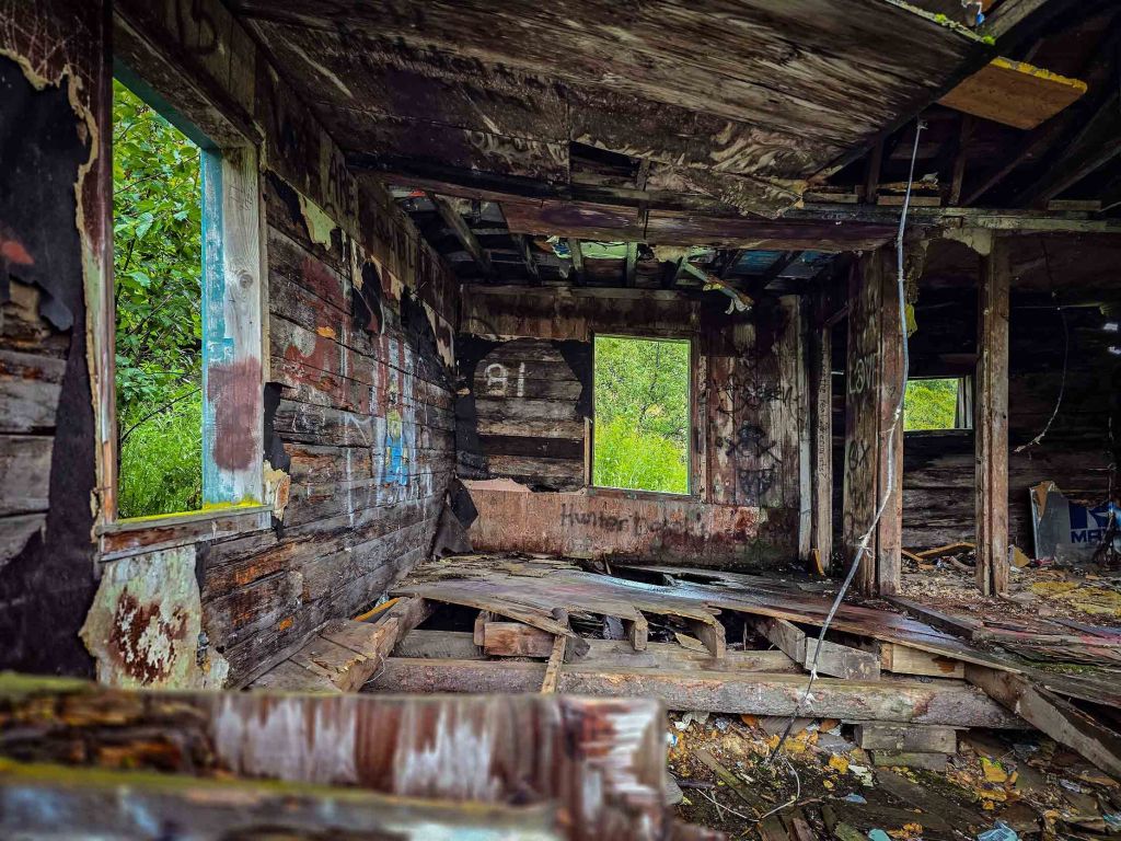 Na samym początku szlaku natrafiamy na porzucone rudery domów…..