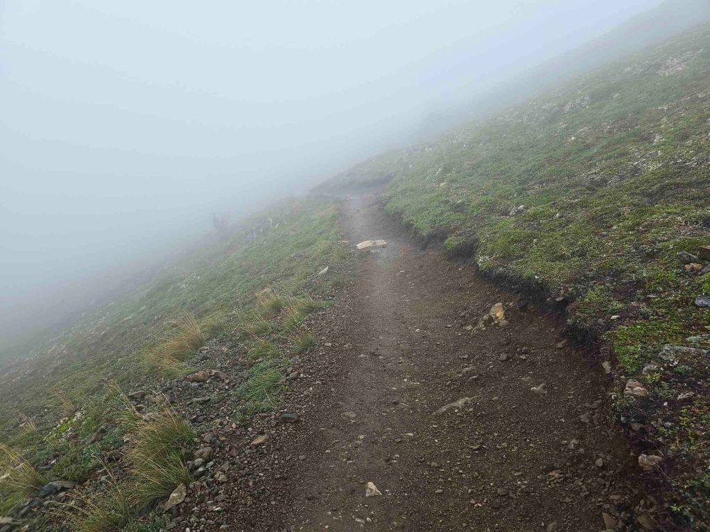 Jakby nie ta pogoda byłby to całkiem przyjemny szlak z panoramicznymi widokami…. które odsłaniają się przed nami na około pół minuty…..
