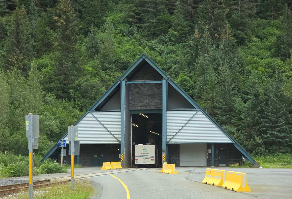 Czasu i tak mamy niewiele, a jedyną opcją jaką przy tak beznadziejnej pogodzie można „odhaczyć” jest odwiedzenie miasteczka Whititer. To miejsce, dokąd prowadzi jedna droga…a w zasadzie tory kolejowe w długim tunelu. Anderson Memorial Tunnel ma długość 2,6 mili. Pierwszeństwo mają pociągi 😊.