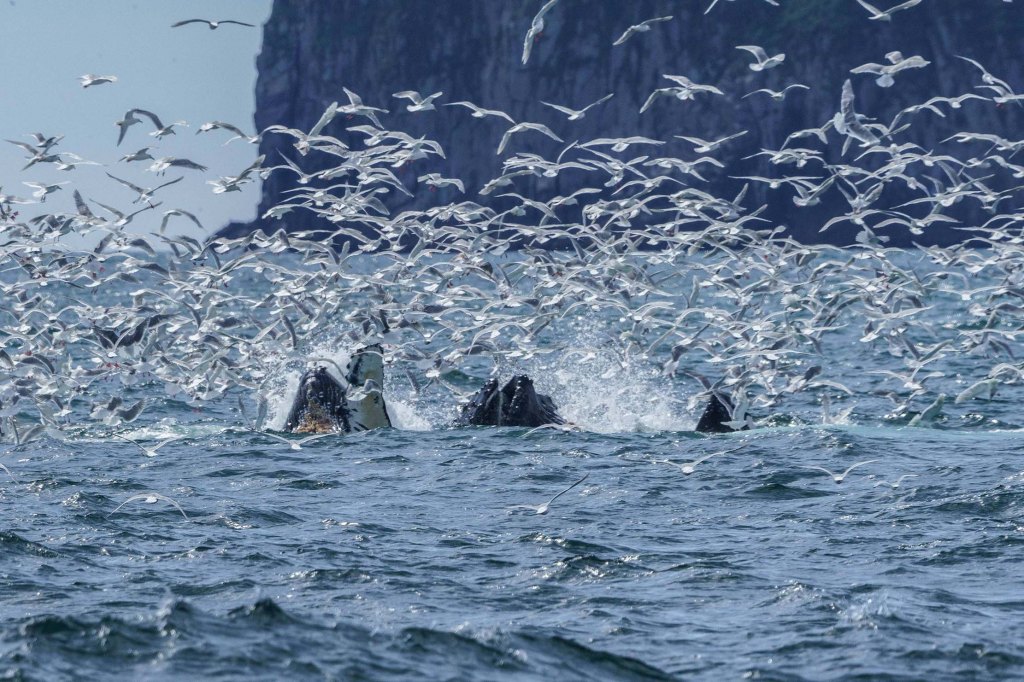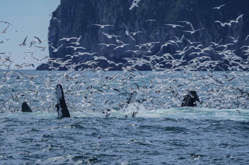 W okresie żerowania w bogatych w składniki odżywcze wodach Alaski dorosłe humbaki zjadają dziennie ponad tonę pożywienia, co powoduje szybki spadek populacji różnych gatunków ich ofiar ☹, które zaspokajają ich ogromny apetyt.