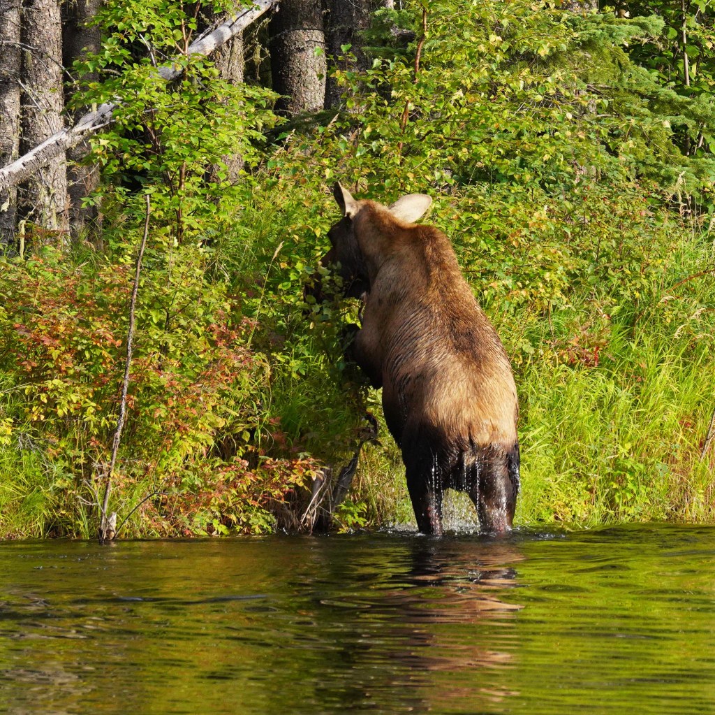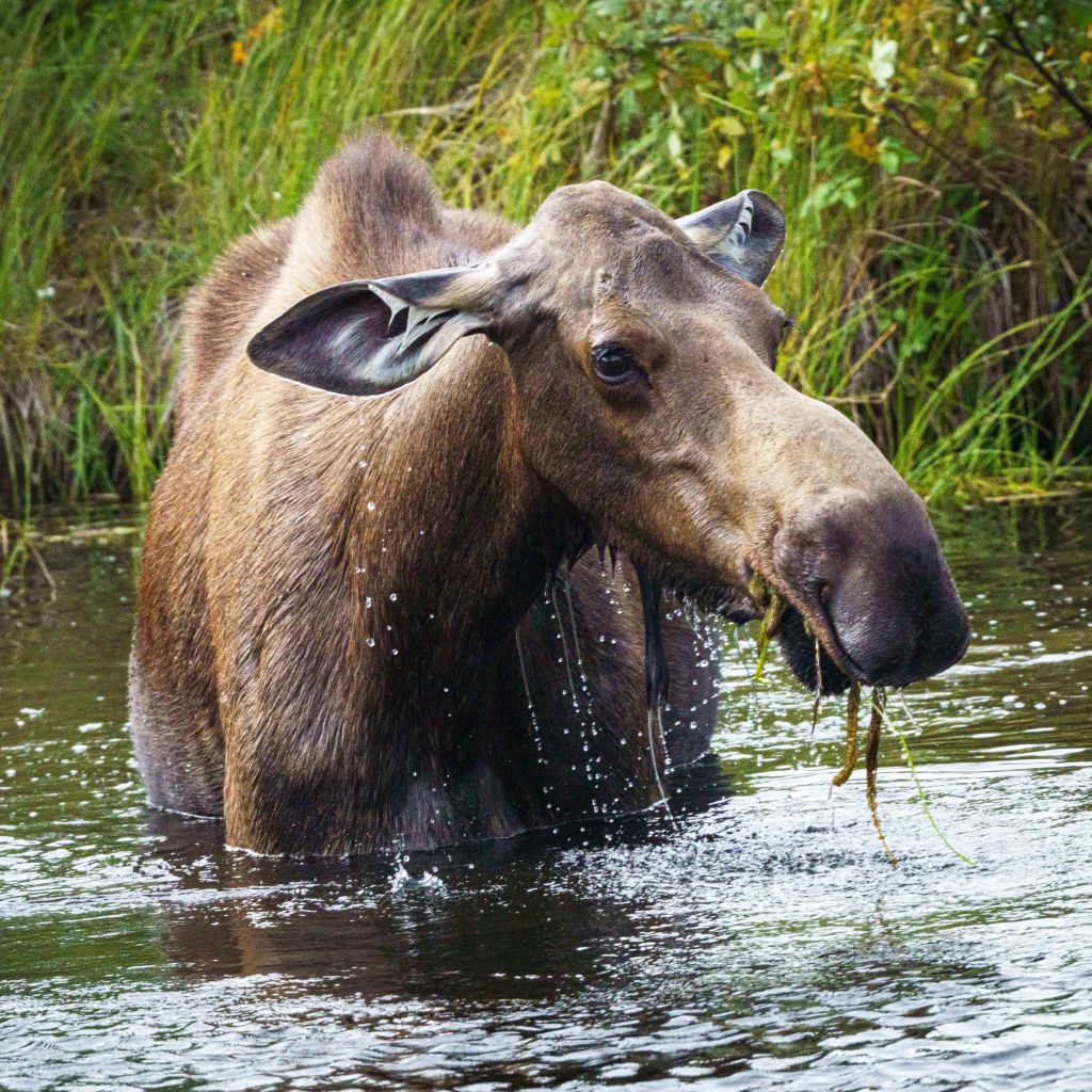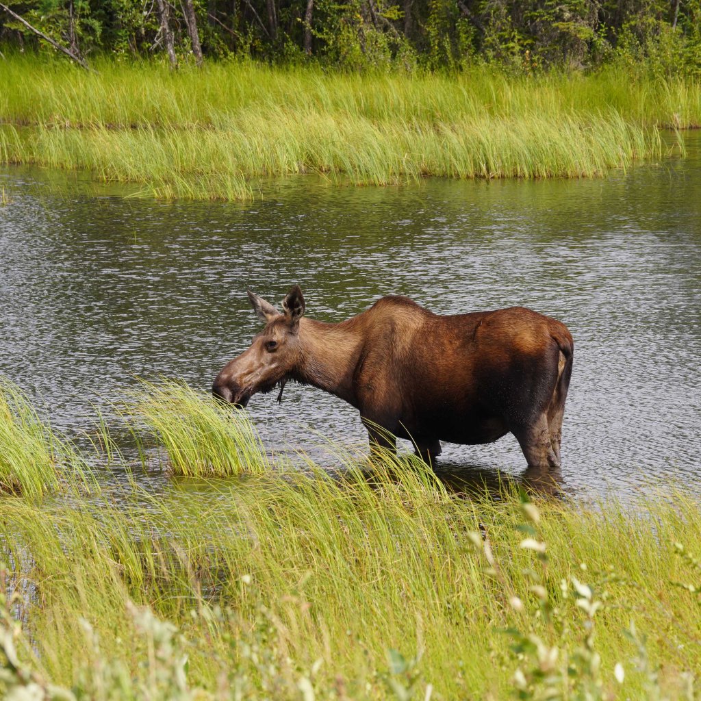 Wjeżdżamy do parku narodowego Kenai Fjords mijając po drodze „pasącego” się przy drodze łosia.