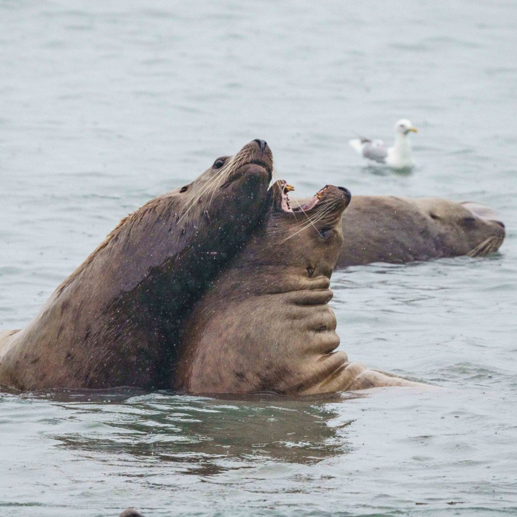 Tuż obok naszego statku wyłania się wydra morska. W 1973 roku alaskańską populację wydr szacowano na około 125 tysięcy. Jednak do 2006 roku spadła do 73 tysięcy. Za większość tego spadku odpowiadają Aleuty, chociaż bezpośrednia przyczyna nie jest znana – naukowcy podejrzewają drapieżnictwo orki. Populacja wydry morskiej w Zatoce Księcia Williama również mocno ucierpiała w wyniku wycieku ropy Exxon Valdez, który zabił tysiące wydr w 1989 roku.