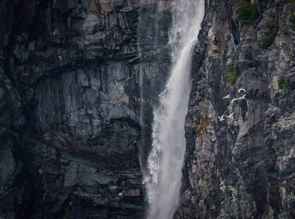 Przez cały rejs jesteśmy otoczeni górami pokrytymi śniegiem i lodowcami. Podpływamy do wpadających bezpośrednio do zatoki wodospadów.