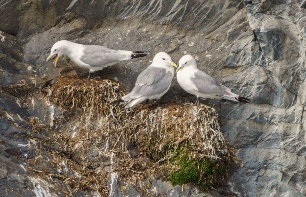 Podpływamy bliżej do skał by przyjrzeć się mewom…..