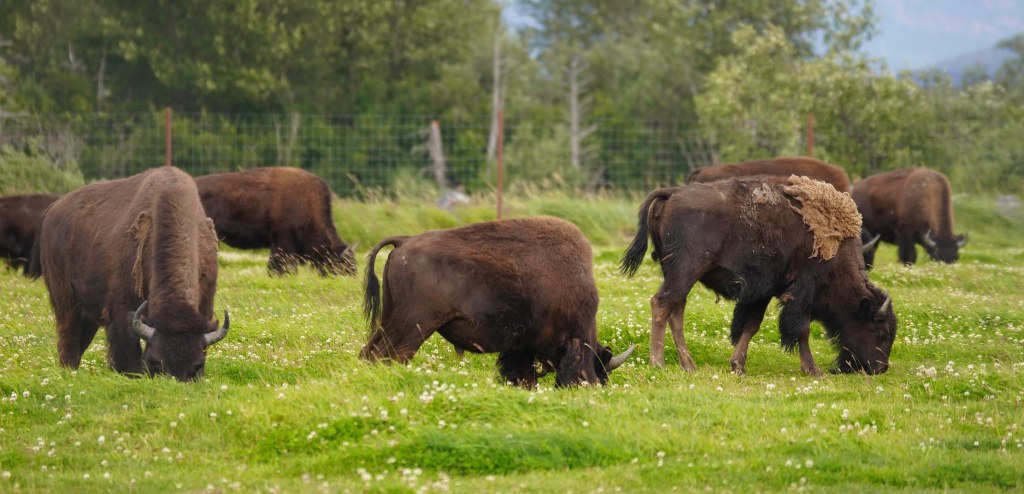 Głównym punktem w dniu dzisiejszym jest farma wołów piżmowych Muskox farm ($14/$8 dzieci). Dobrze, że zrobiliśmy rezerwację na godzinę 10 (ze względu na odbywające się tu od godziny 11 biegi przełajowe kolejne trzy wycieczki zostały odwołane).