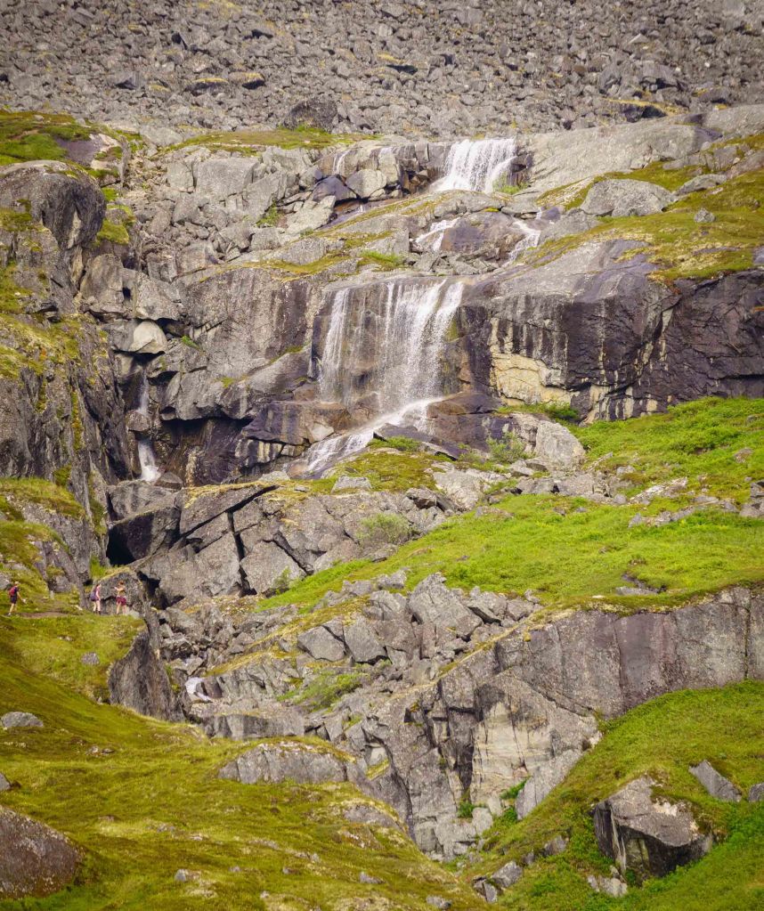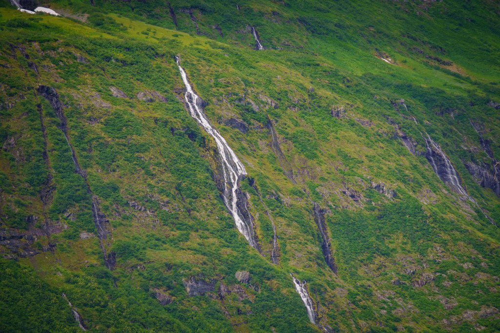 Ze stromych szczytów wodospady wpadają bezpośrednio do zatoki.