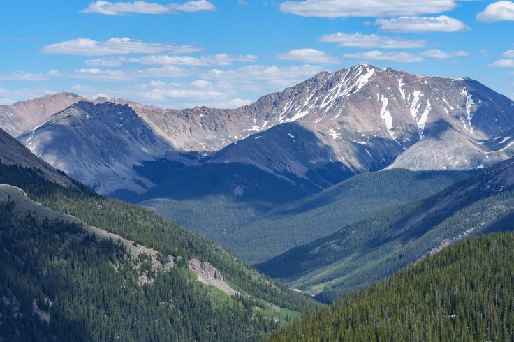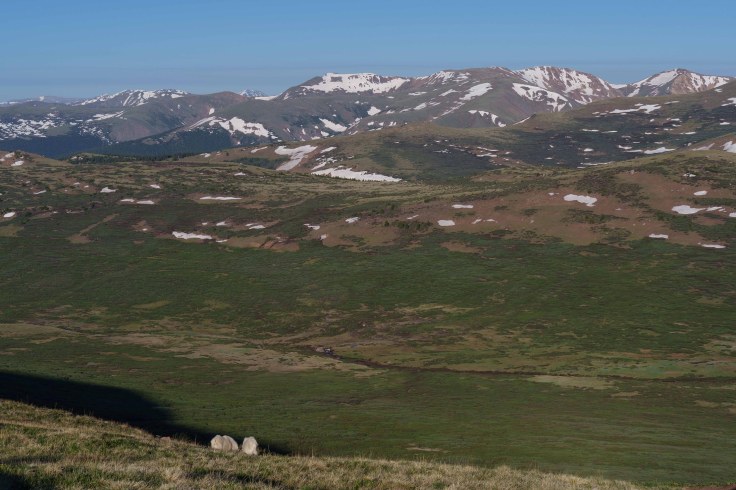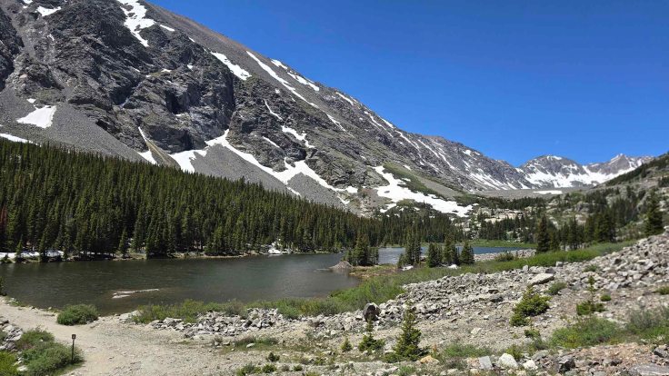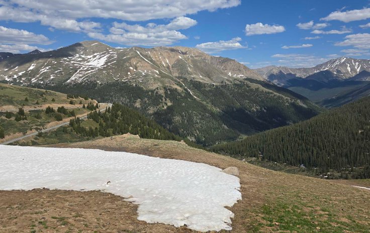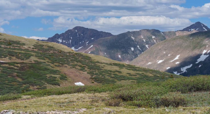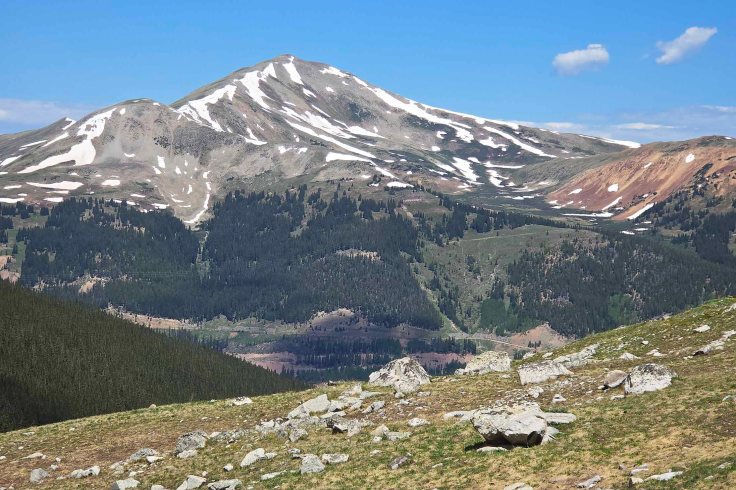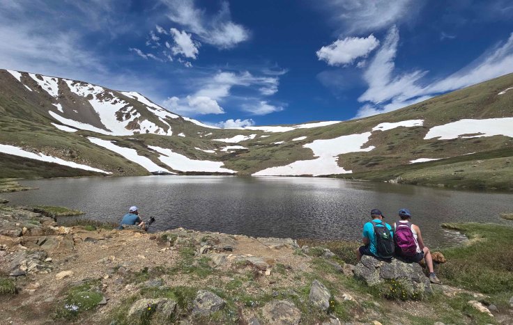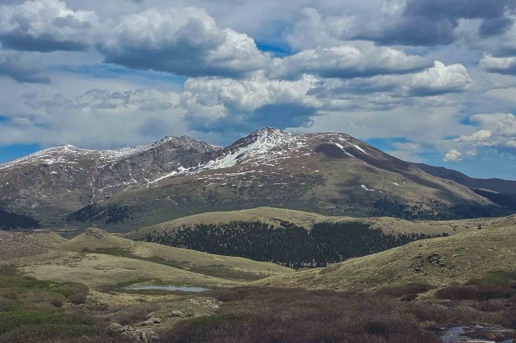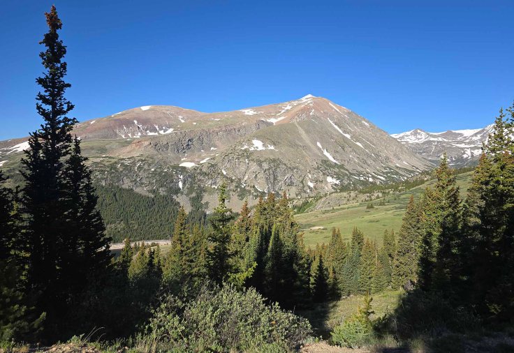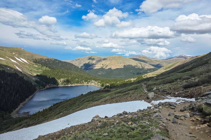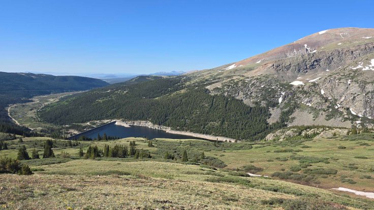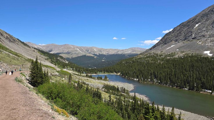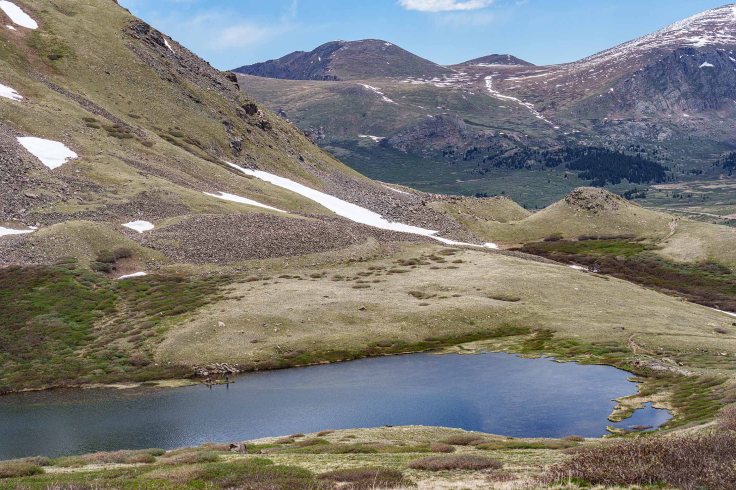 Na zachodzie wznoszą się szczyty Grays Peak i Torreys Peak, a na północnym wschodzie szczyt Mount Blue Sky (na który można wjechać autem).