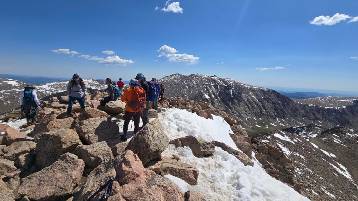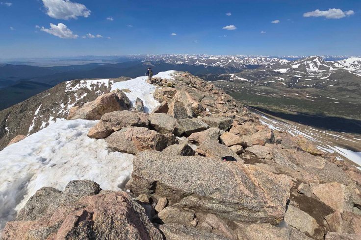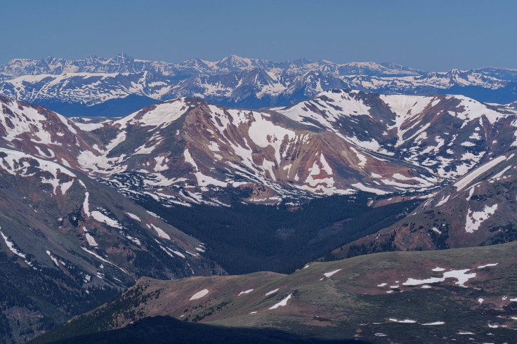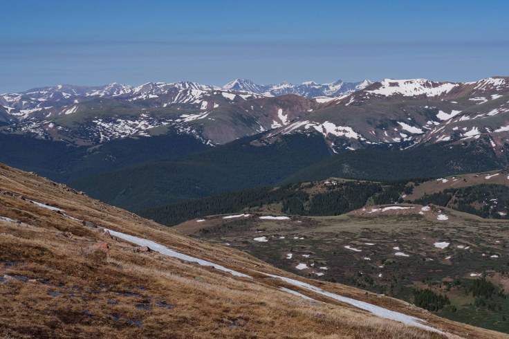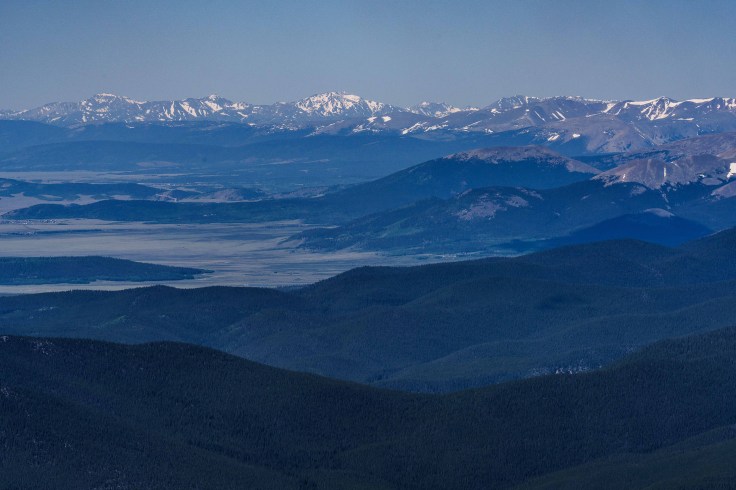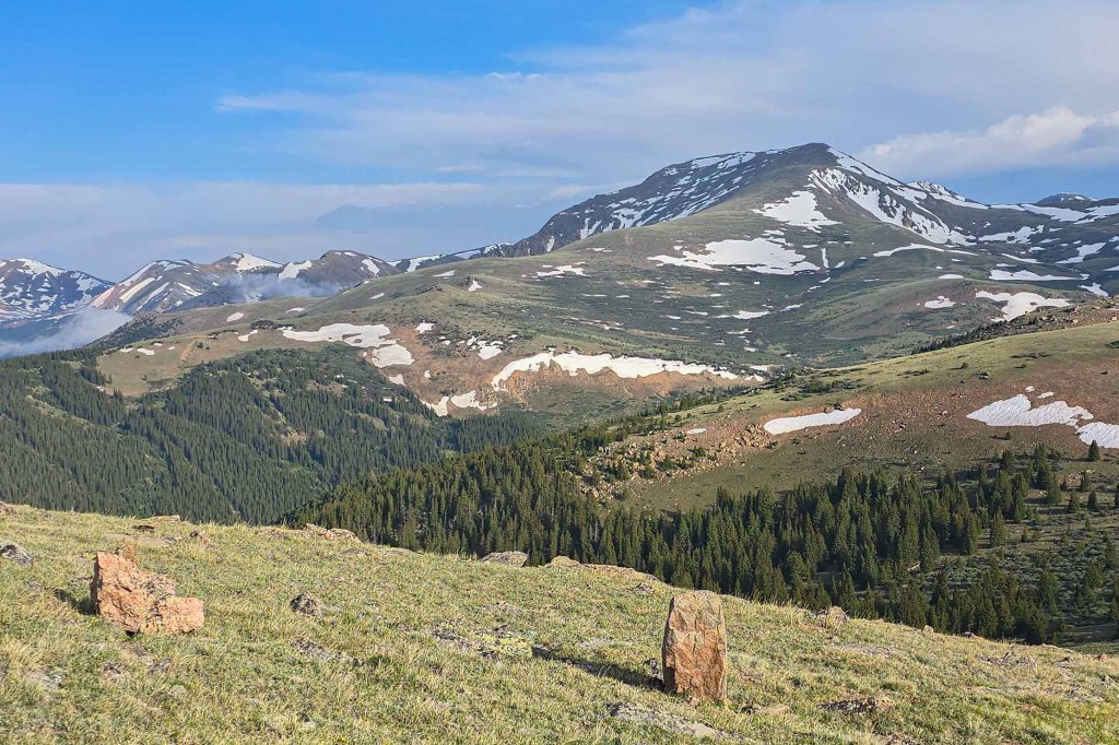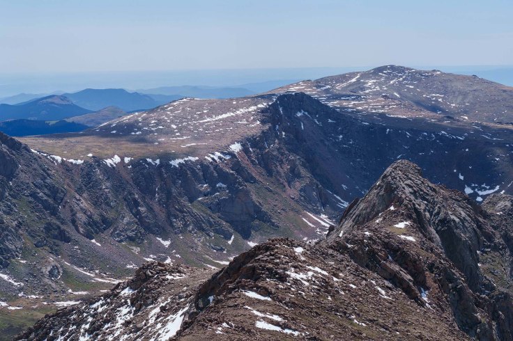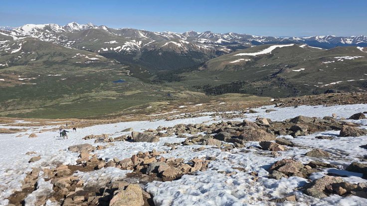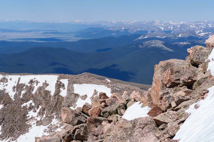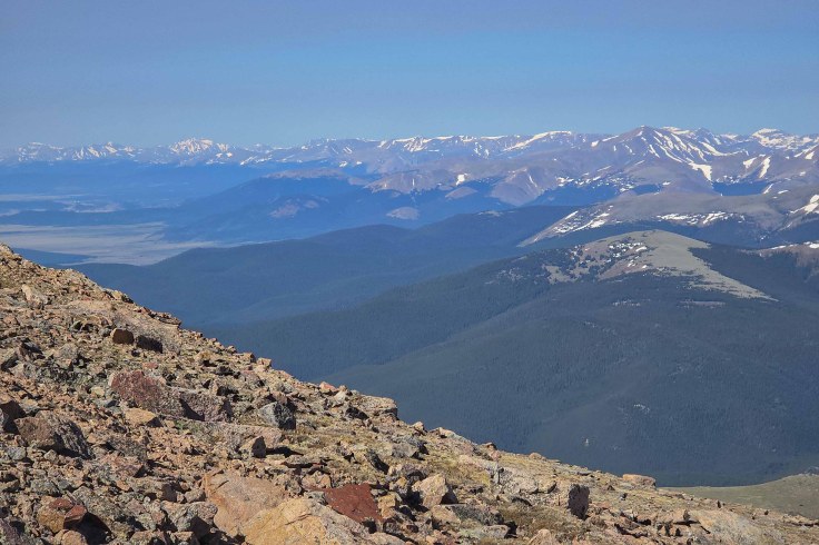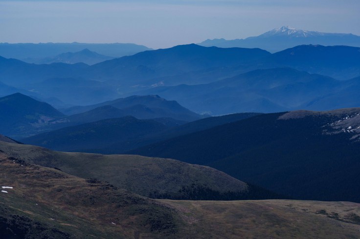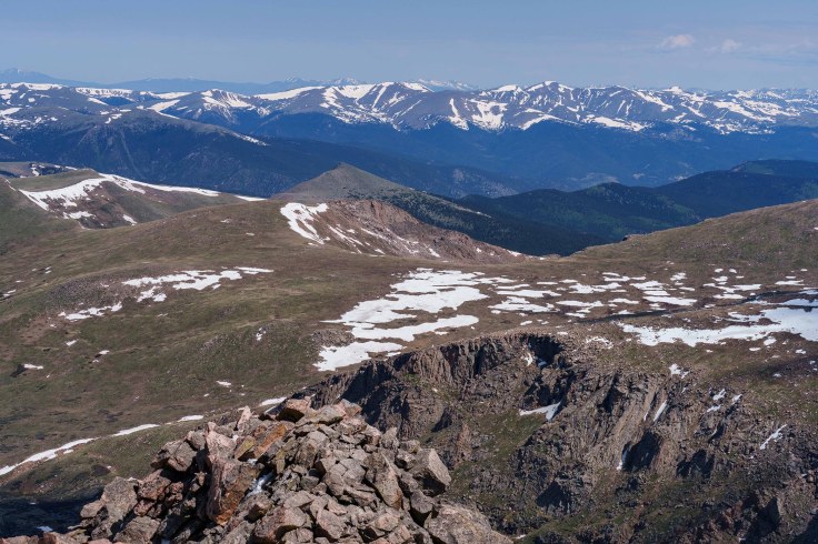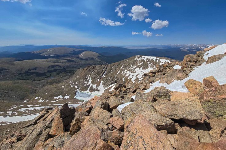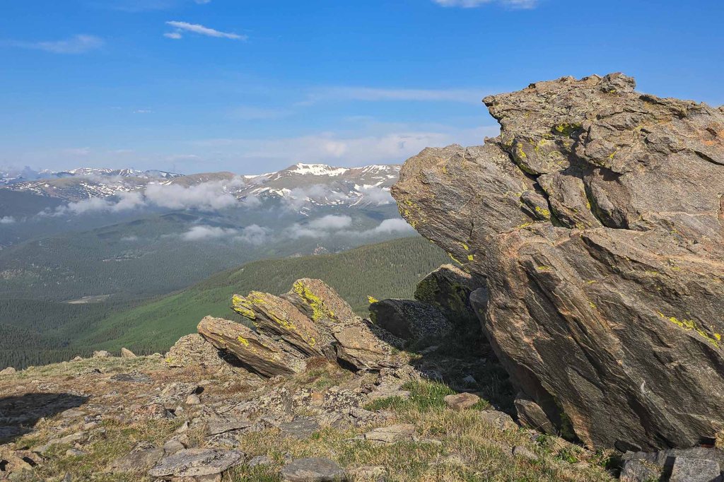 Po dotarciu na szczyt (po 5 godzinach) rozpościerają się przede mną niesamowite widoki Gór Skalistych na pasmo Front Range.