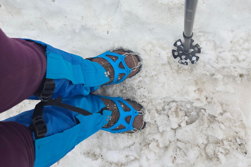 Na mojej drodze znajduje się jedno spore połacie śniegu więc ze względów bezpieczeństwa nakładam raki i spokojnie pokonuję ten oblodzony kawałek.