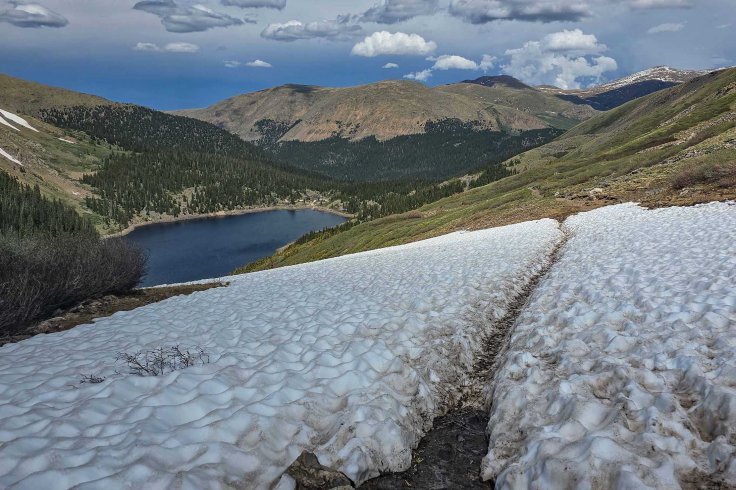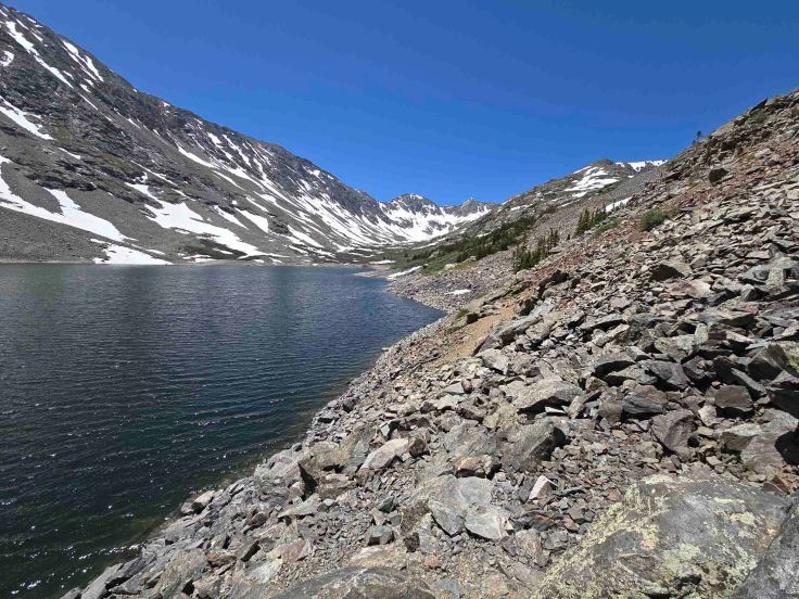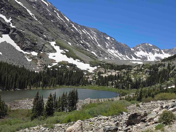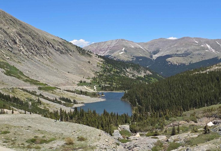 Droga ta kończy się przy Górnym zbiorniku (Upper Blue Lake). Następnie można powspinać się powyżej Górnego Blue Lake do kotła polodowcowego poniżej szczytu Quandary Peak…. ale ze względu na bardzo wysoką temperaturę rezygnuje z tego wyczynu.