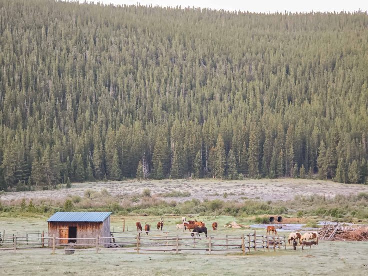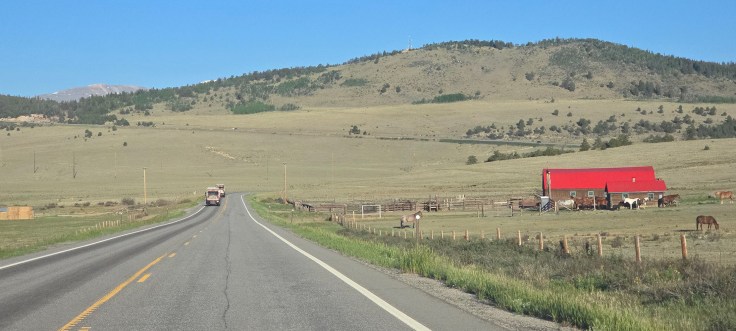 O świcie opuszczam Georgetown wspinając się ponownie krętą drogą na przełęcz Guanella. Przed wioską Grant mijam kilka stadnin z pasącymi się na łąkach końmi.