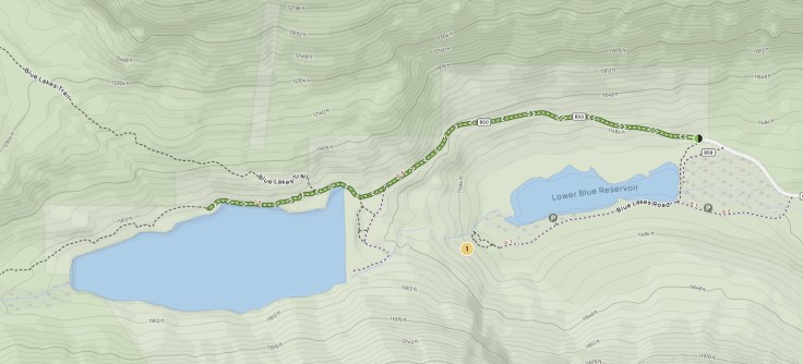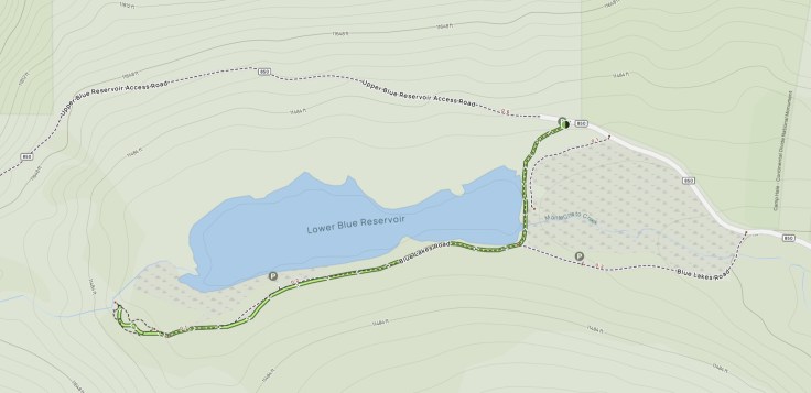Jeziora Górne i Dolne Blue Lakes są sztucznymi zbiornikami retencyjnymi. Obydwa szlaki rozpoczynają się przy parkingu przy dolnym zbiorniku (Lower Blue Reservoir).
