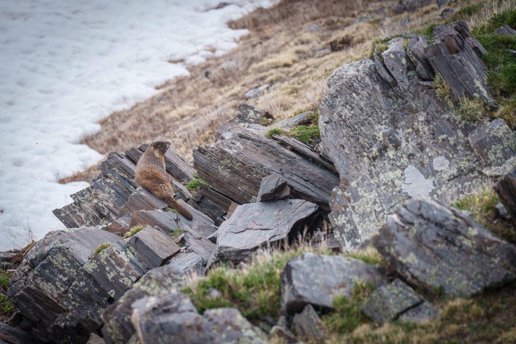 Jest tu tak pięknie, że koleją godzinę spędzam na wpatrywaniu się w góry, biegające świstaki i przeskakujące od czasu do czasu kozły górskie.