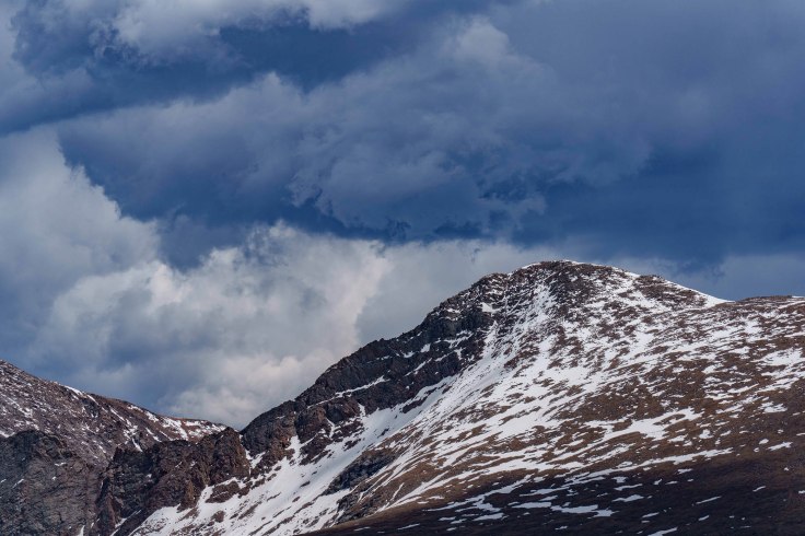 Pomimo aklimatyzacji na wyższych elewacjach przez ostatnie kilka dni, moment wjazdu na Pikes Peak okazał się niezbyt przyjemnym doświadczeniem…….Zaraz po wyjściu z auta odczuwam zawroty głowy i zachwiania równowagi….. do tego dochodzi przeszywający wiatr i dotkliwe zimno, co szybko odbiera mi chęci na dłuższy pobyt, więc po 15 minutach zaczynam zjazd w dół….