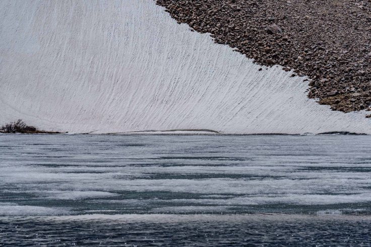 Dochodzę do jeziora Silver Dolar pokrytego w większości pływającymi krami lodowymi.