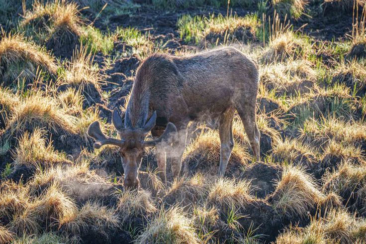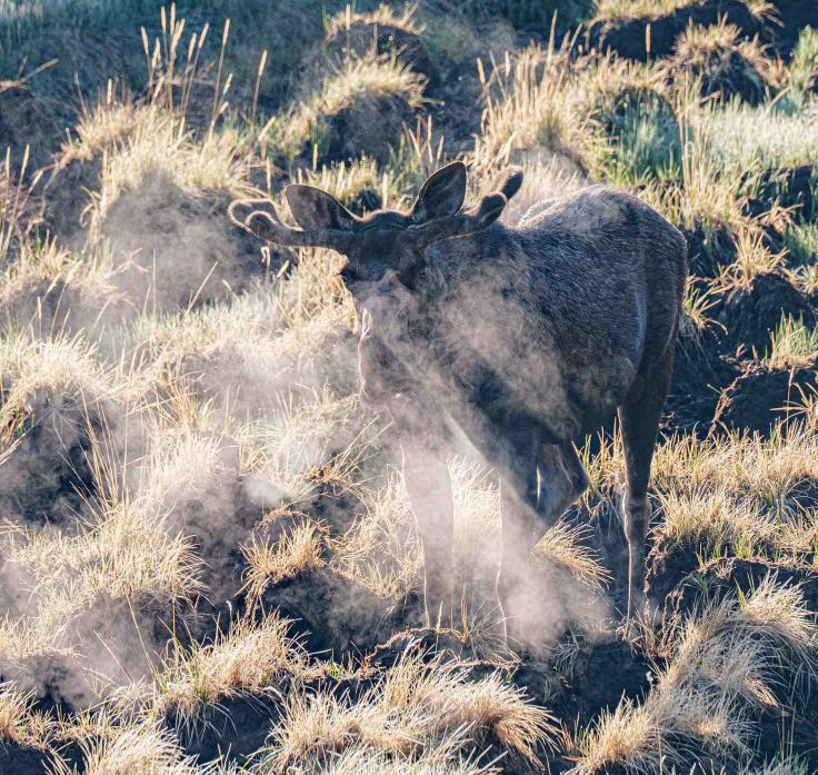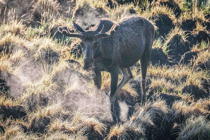 Skręcam na zachód w drogę #285 w kierunku miasteczka Fairplay. W porannej mgle dostrzegam pasącego się na mokradłach wielkiego łosia….