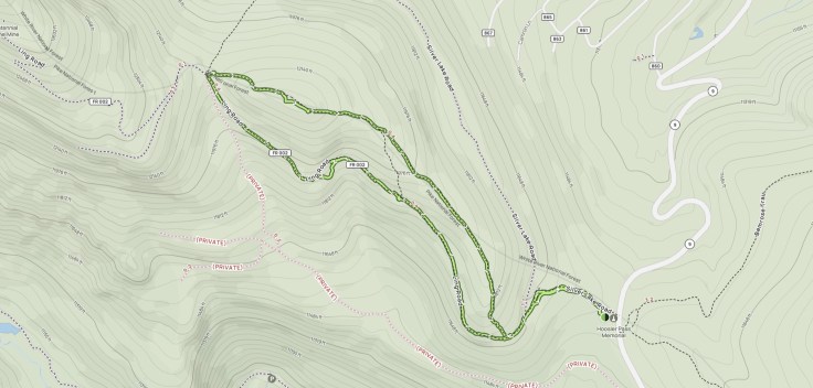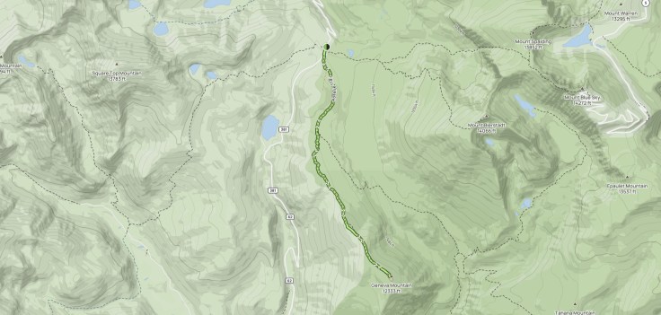 Zaczynam od Geneva mountain trail (długość szlaku 7.7mili, zmiana elewacji1,200ft).