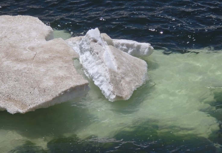 W jeziorze pływają jeszcze całkiem spore kawałki lodu….