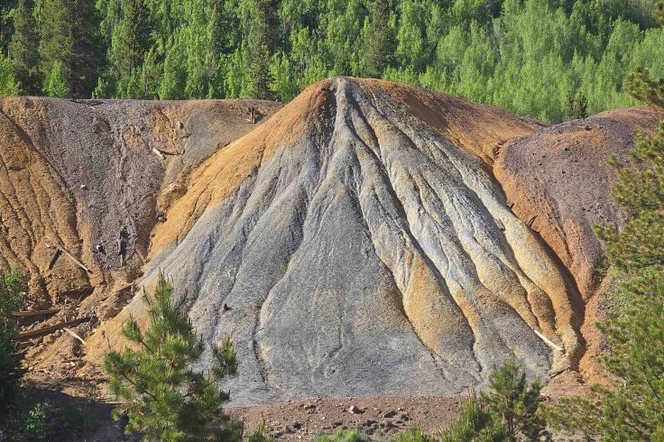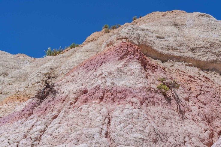 Jaskrawo kolorowe pasma, powstałe w wyniku utleniania związków żelaza, występują w różnych ilościach w wielu warstwach gliny.