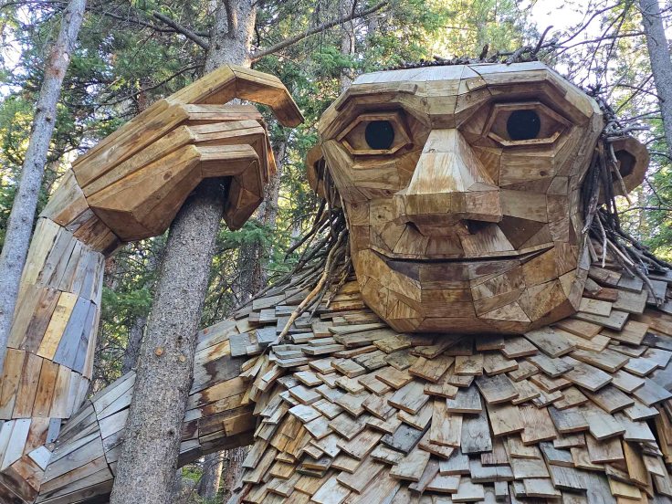 Na sam koniec zostawiam sobie Trollstigen Trail (długość 0.25-mili)-prowadzący do drewnianego trolla o imieniu Isak Hearthstone. Duński artysta Thomas Dumbo tworzy takie rzeźby z odpadów na całym świecie.