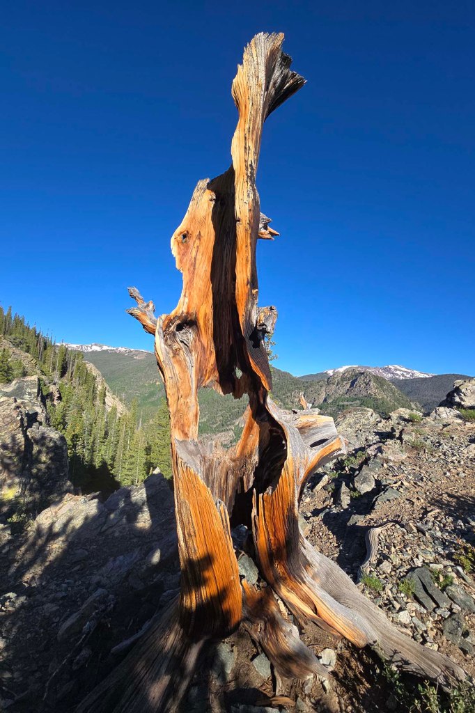 Wędrując grzbietem mijam co chwila pokręcone konary wyschniętych drzew …. Niektóre z nich wyglądają jak dzieła sztuki…