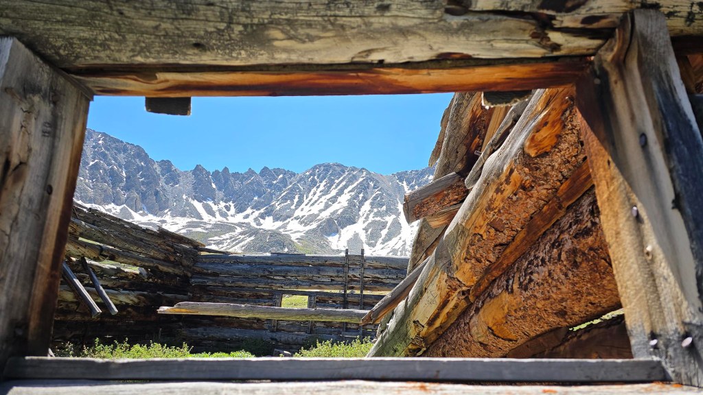 Widok opuszczonych chat na tle strzelistych szczytów jest spektakularny i stanowi idealny obiekt do zdjęć.