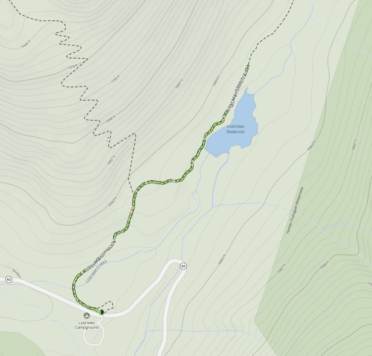 Zjeżdżam z przełęczy w kierunku Aspen by dosłownie przebiec się krótkim szlakiem Lost man Reservoir trail (długość 1.4 mili).