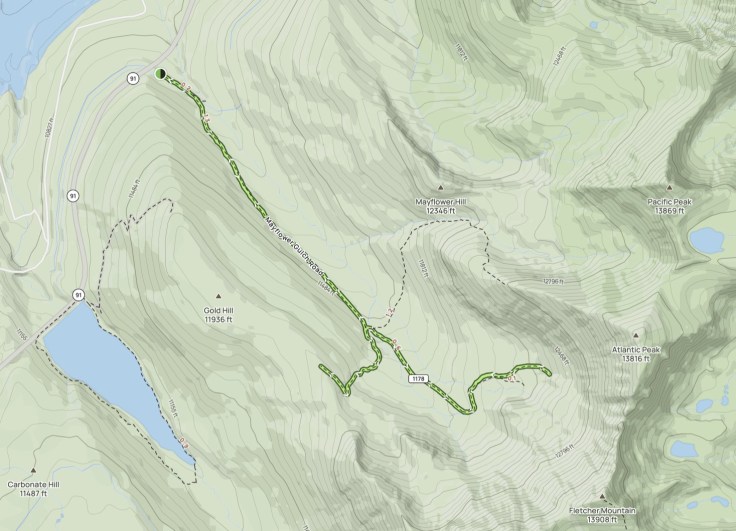 Kolejny szlak to Mayflower Gulch Grand Traverse (długość 6.4mili, zmiana elewacji 1,722 ft).